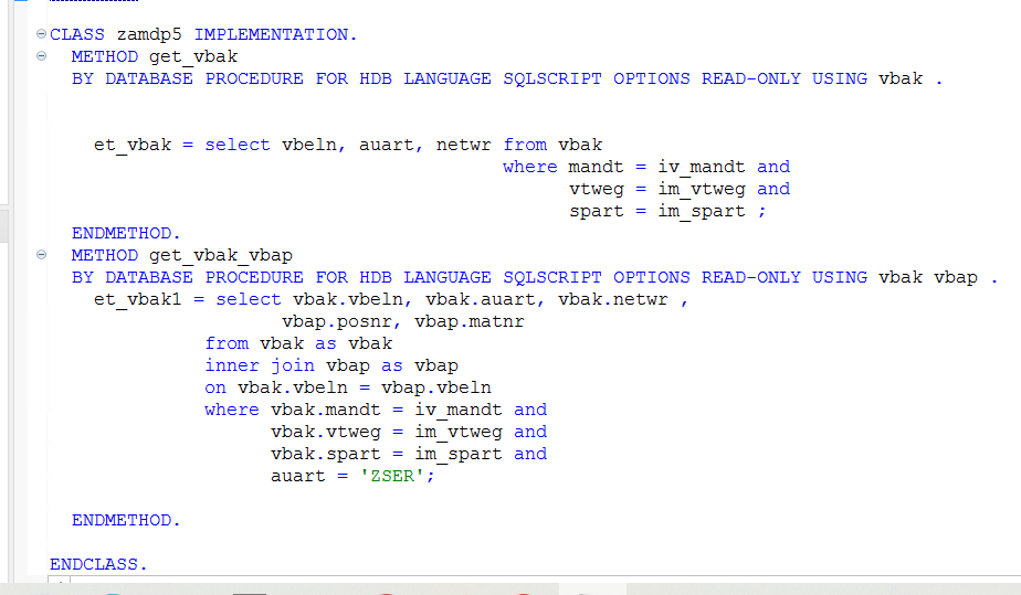 BY DATABASE PROCEDURE FOR HDB LANGUAGE SQLSCRIPT OPTIONS READ-ONLY USING vbak vbap .