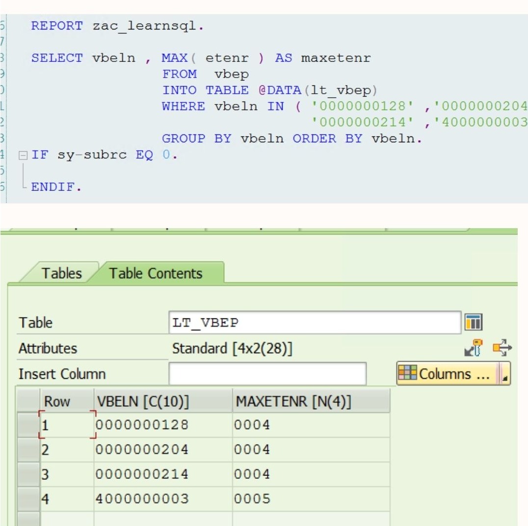 * SELECT vbeln , MAX( etenr ) AS maxetenr